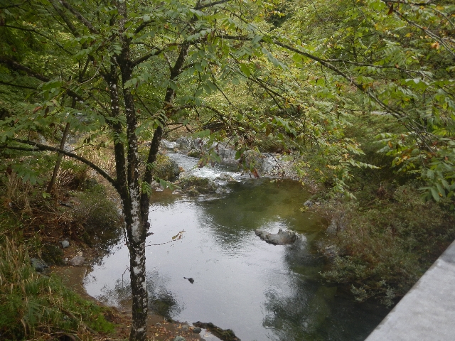 支流の沢,千本桂・・・水量も程好い感じ!岩魚も数匹泳いでいるのが確認できます。