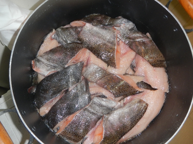 閉伊川漁協から産卵後のサクラマスを譲って頂き干物造りです。