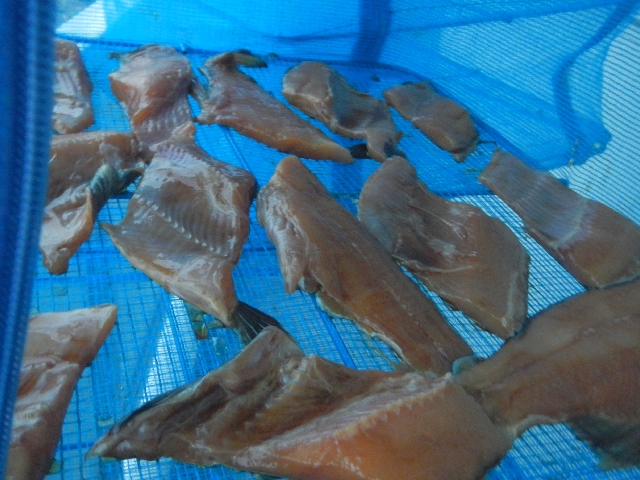 切身にして漬汁に浸して一晩干して・・・・気温も下がってきて空気も乾燥してハエもいなくなり干物造りの条件はバッチリです。