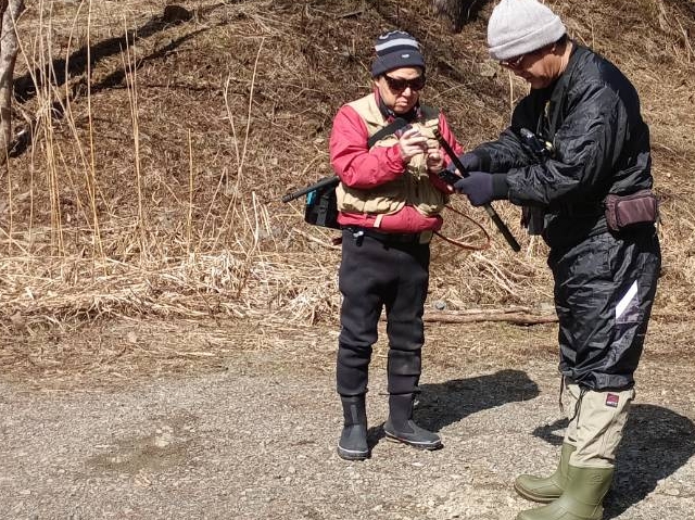 今日は漁協事務所にお父さんとお嬢さん親子が訪ねてきました。釣りは初めてと言う事で根田茂川に案内しました。