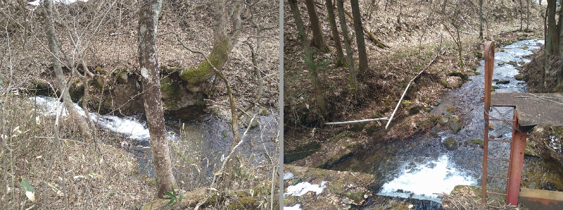 孵化場の水が止まったので日影渕から孵化場まで、雪解けを待って点検をしてきました。どうやら杉の枯葉等と泥が詰まっていたようで応急処置でとりあえずは解決で一安心です。